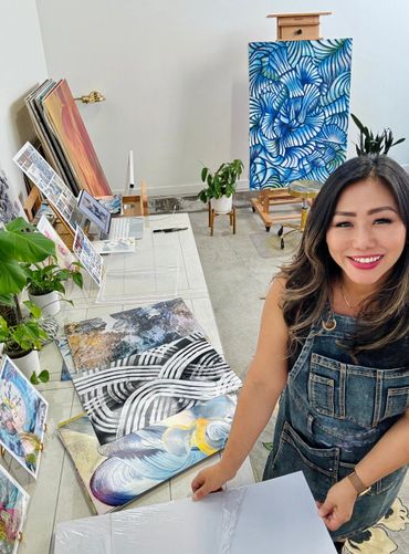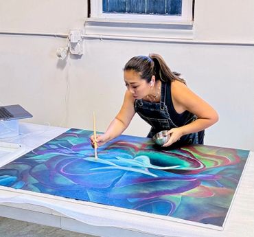 Based in Oakland, California, I create abstract work that explores the intersections of identity, memory, and the unseen. Rooted in my Korean and Japanese heritage, I draw from personal and ancestral narratives translating emotion, nature, and dreams into visual form.